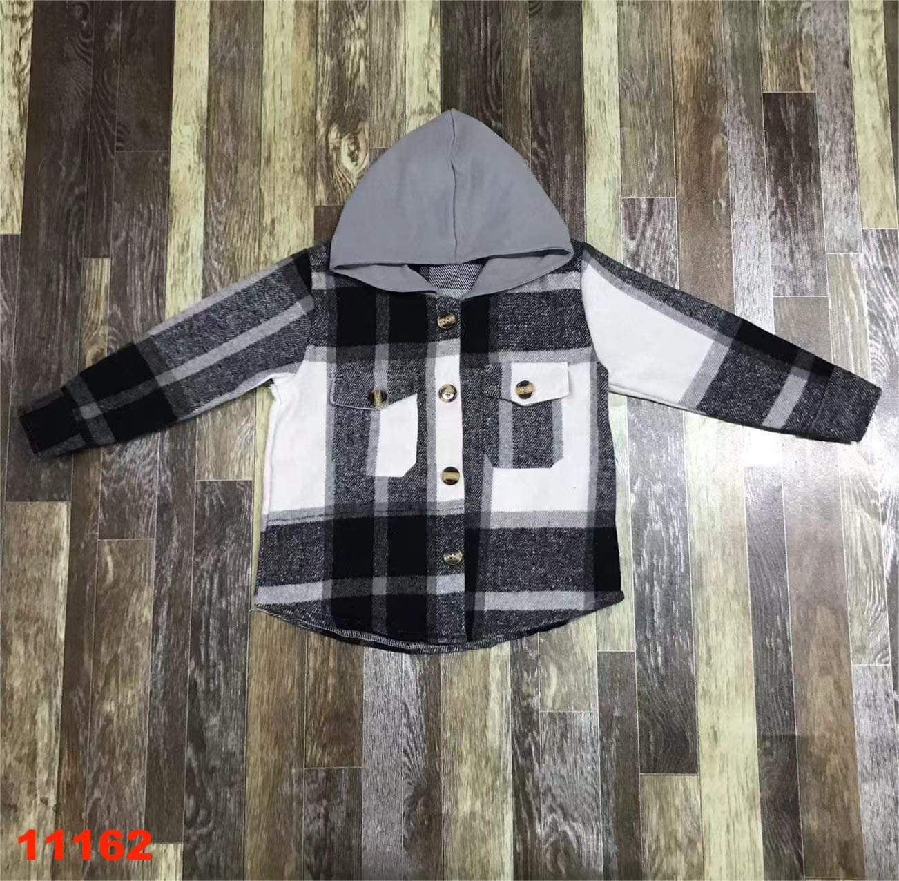 Black and White Plaid Long Sleeve Fleece Hooded Shirt