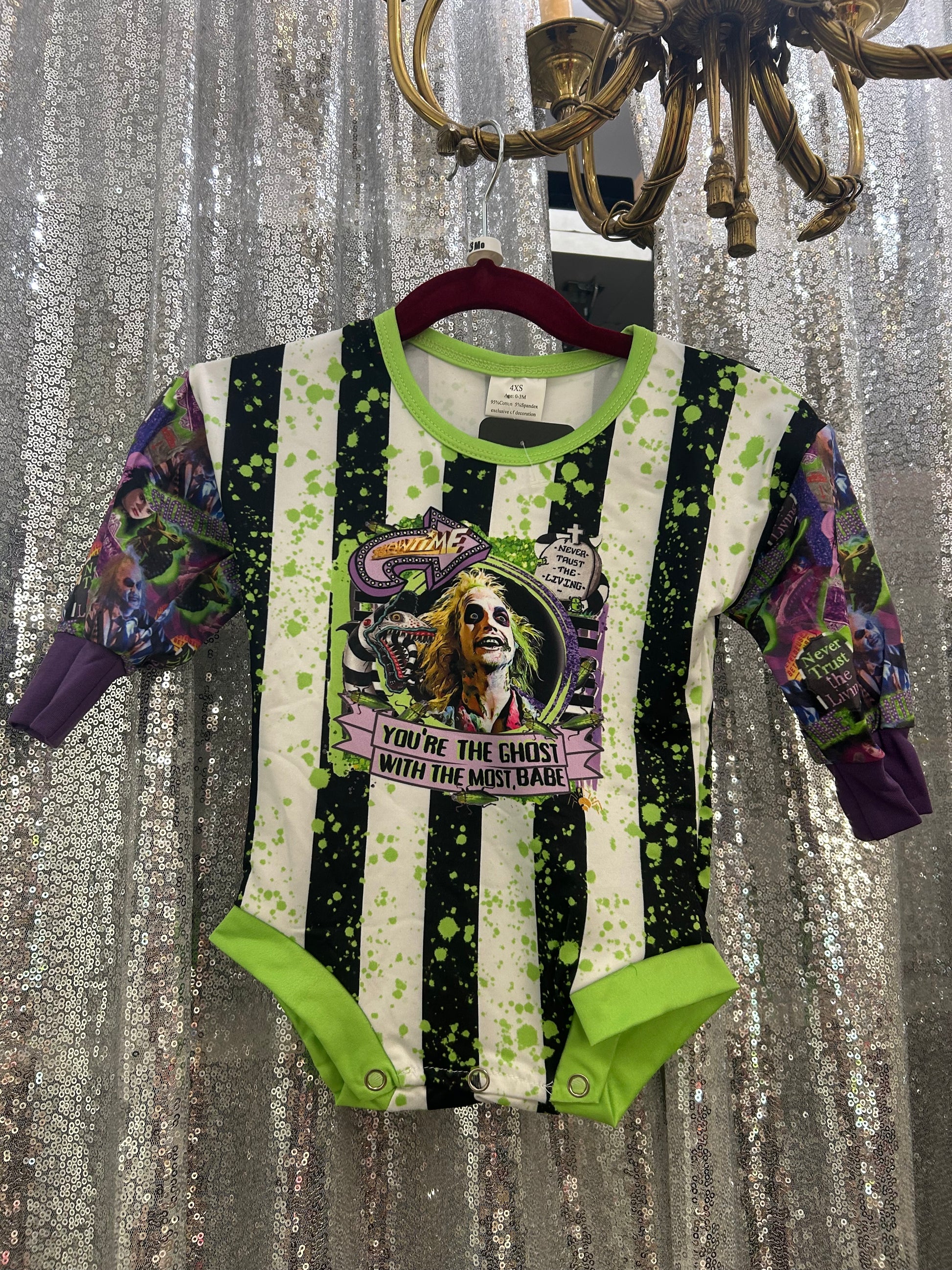 Black and White Striped Long Sleeve Beetlejuice Onesie Halloween