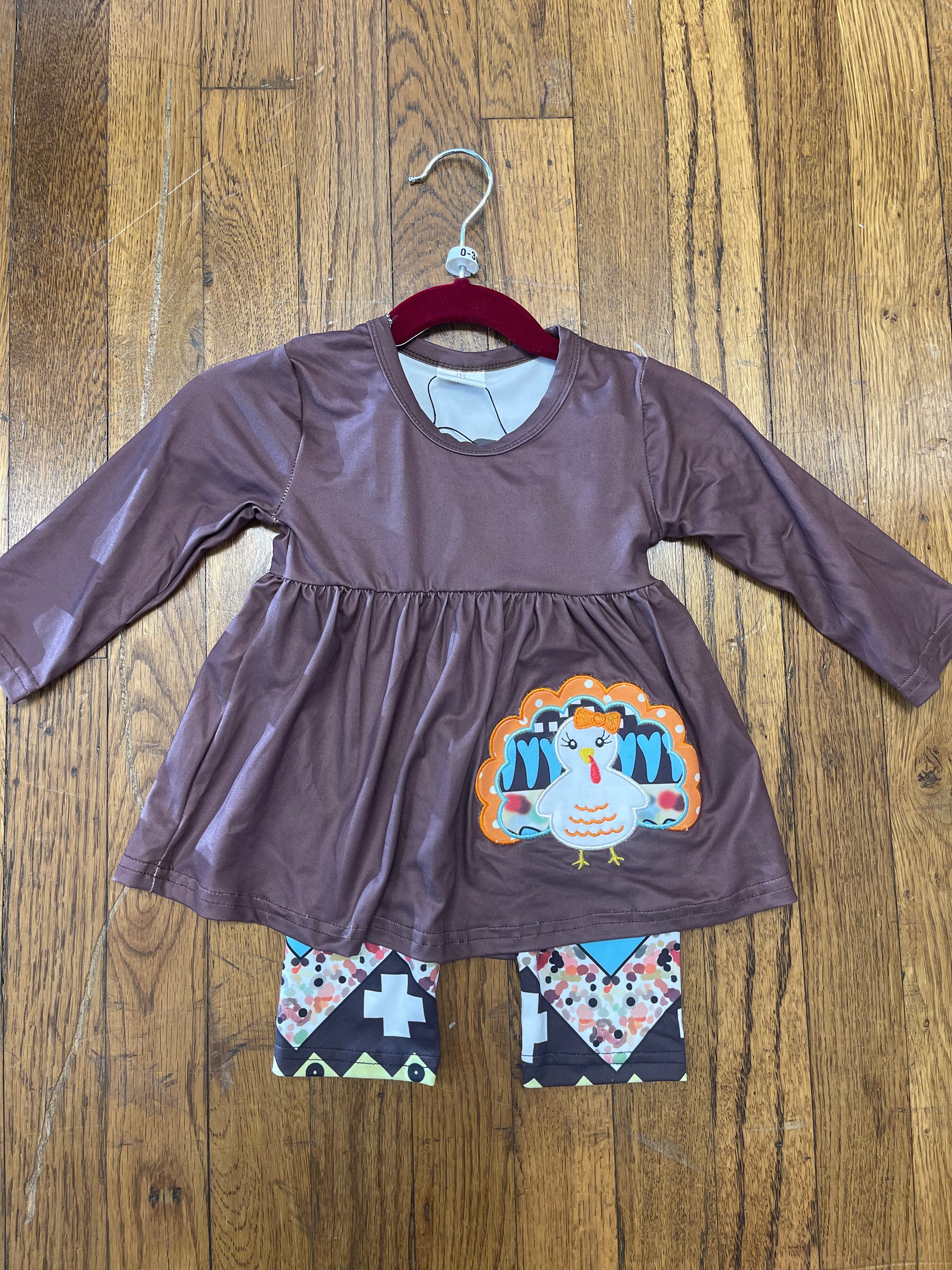 Brown Long Sleeve Thanksgiving Turkey Pants Set