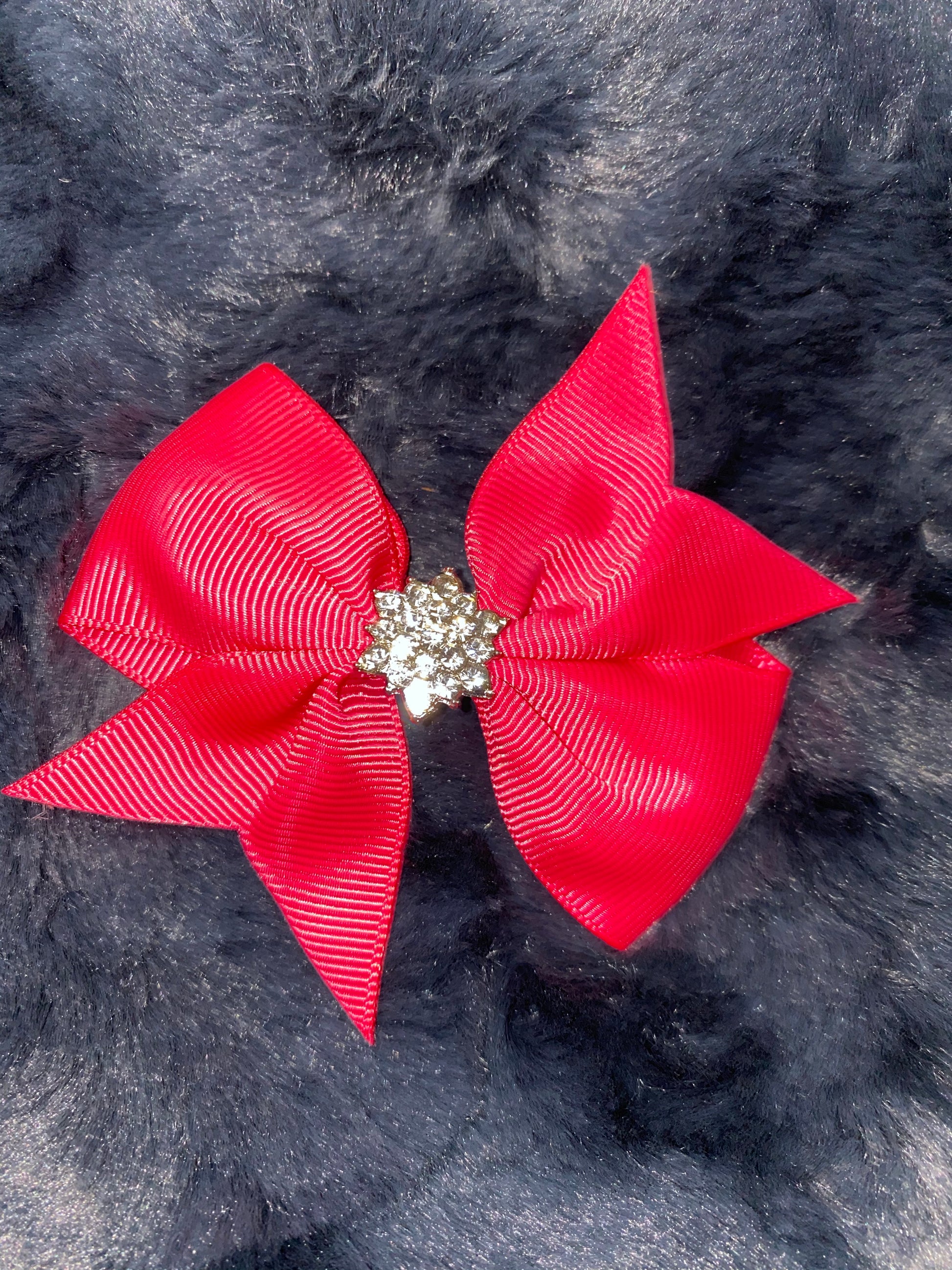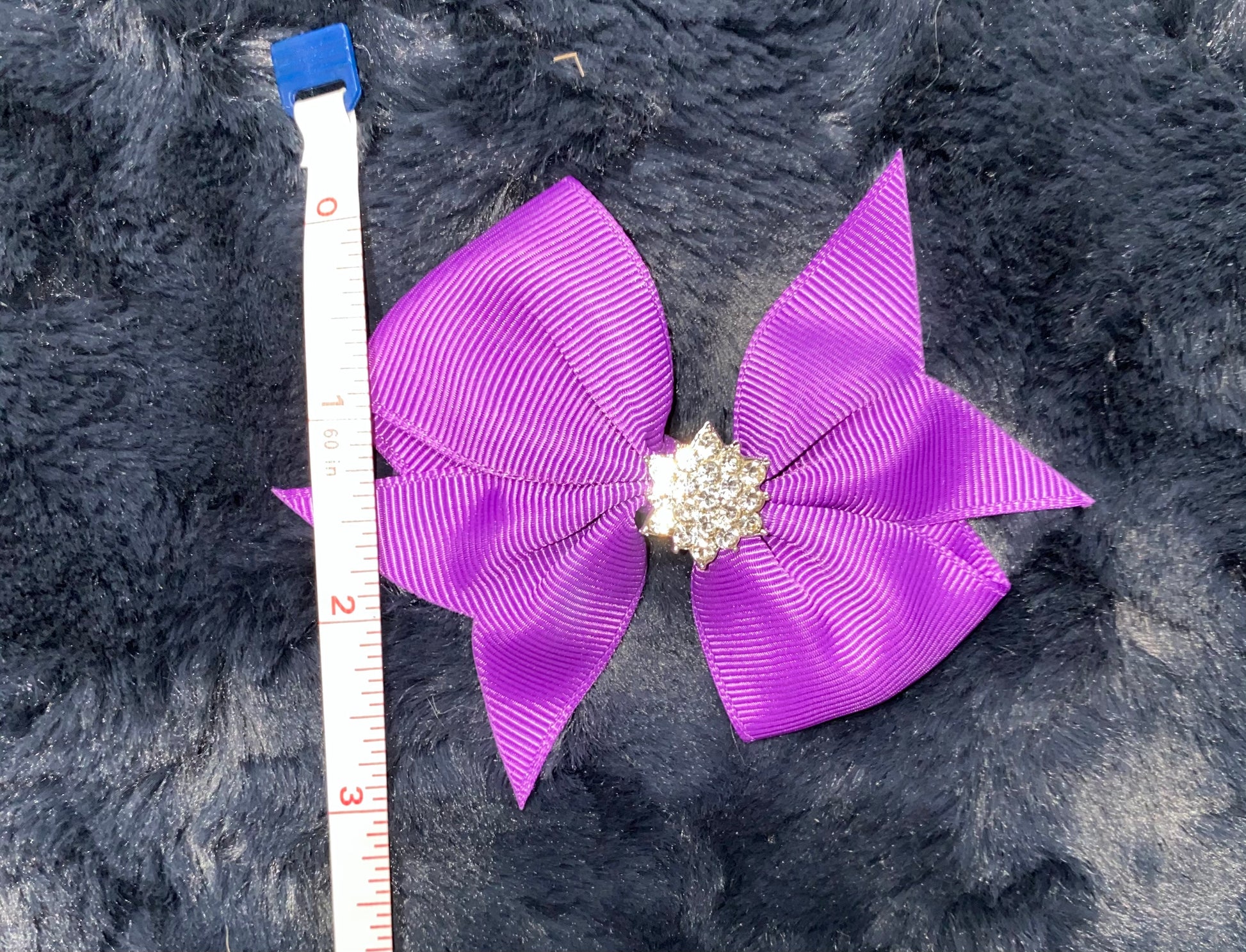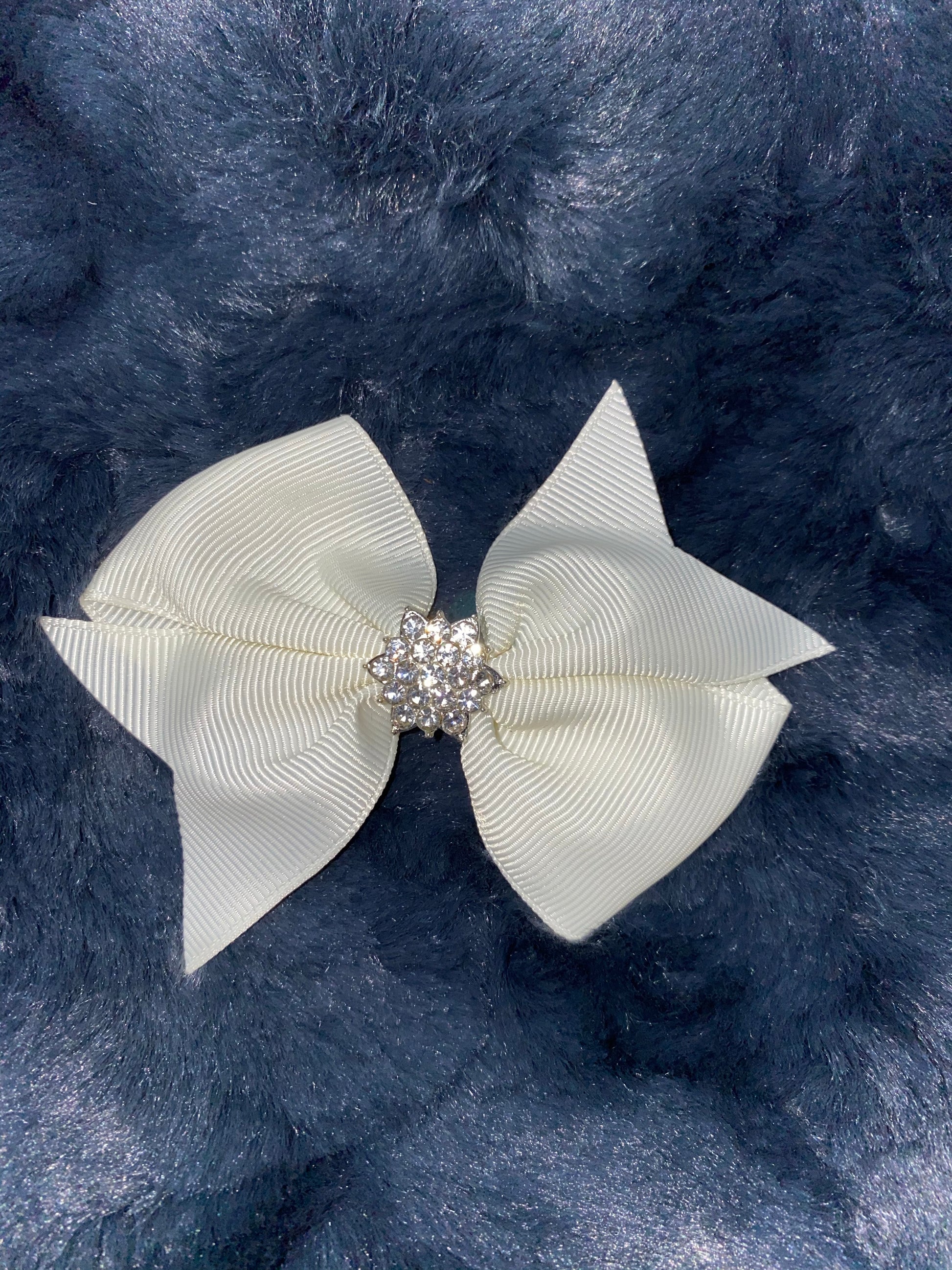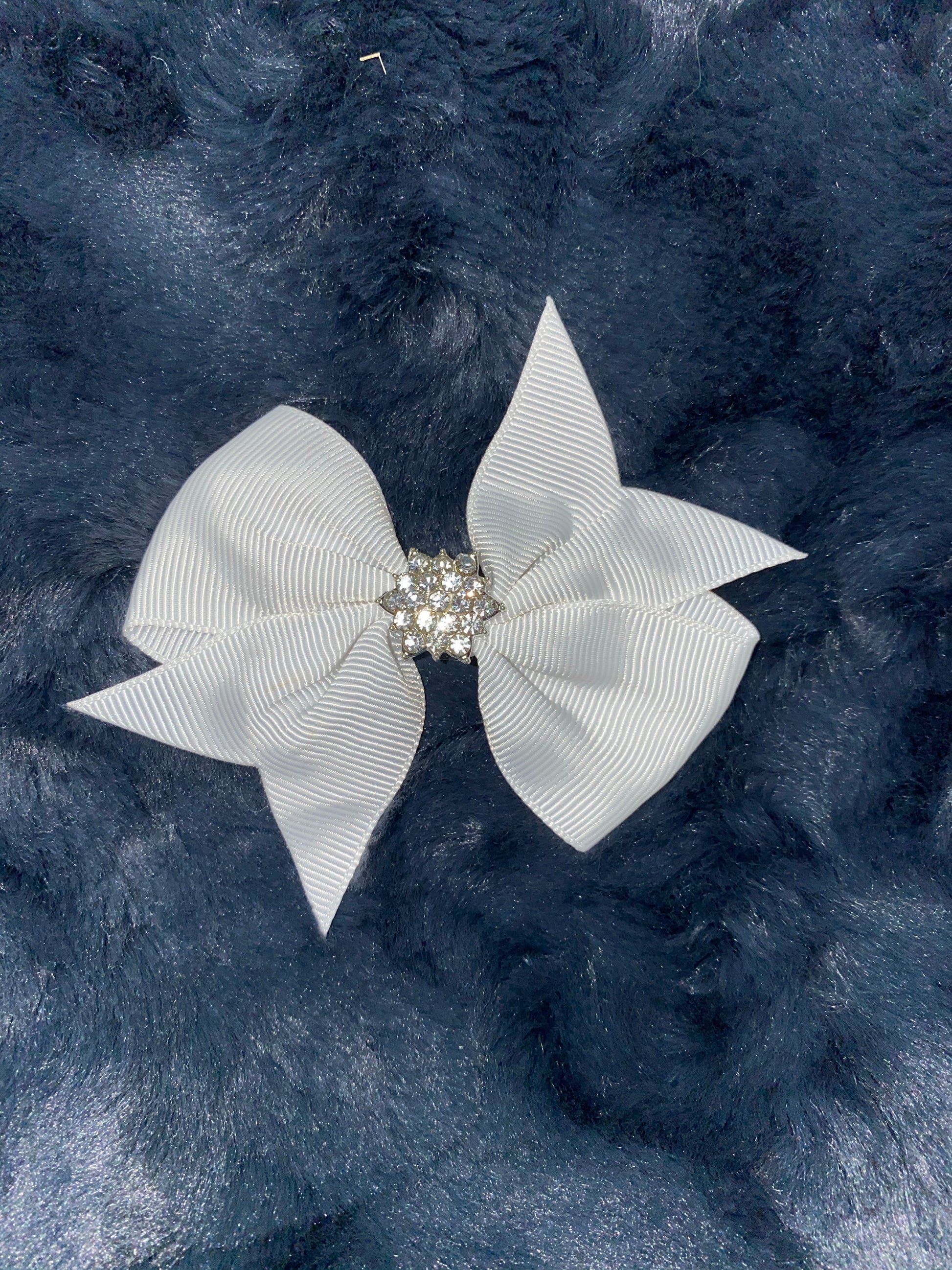 Fancy double loop bow with clear rhinestone center charm. Nice sturdy metal charm.