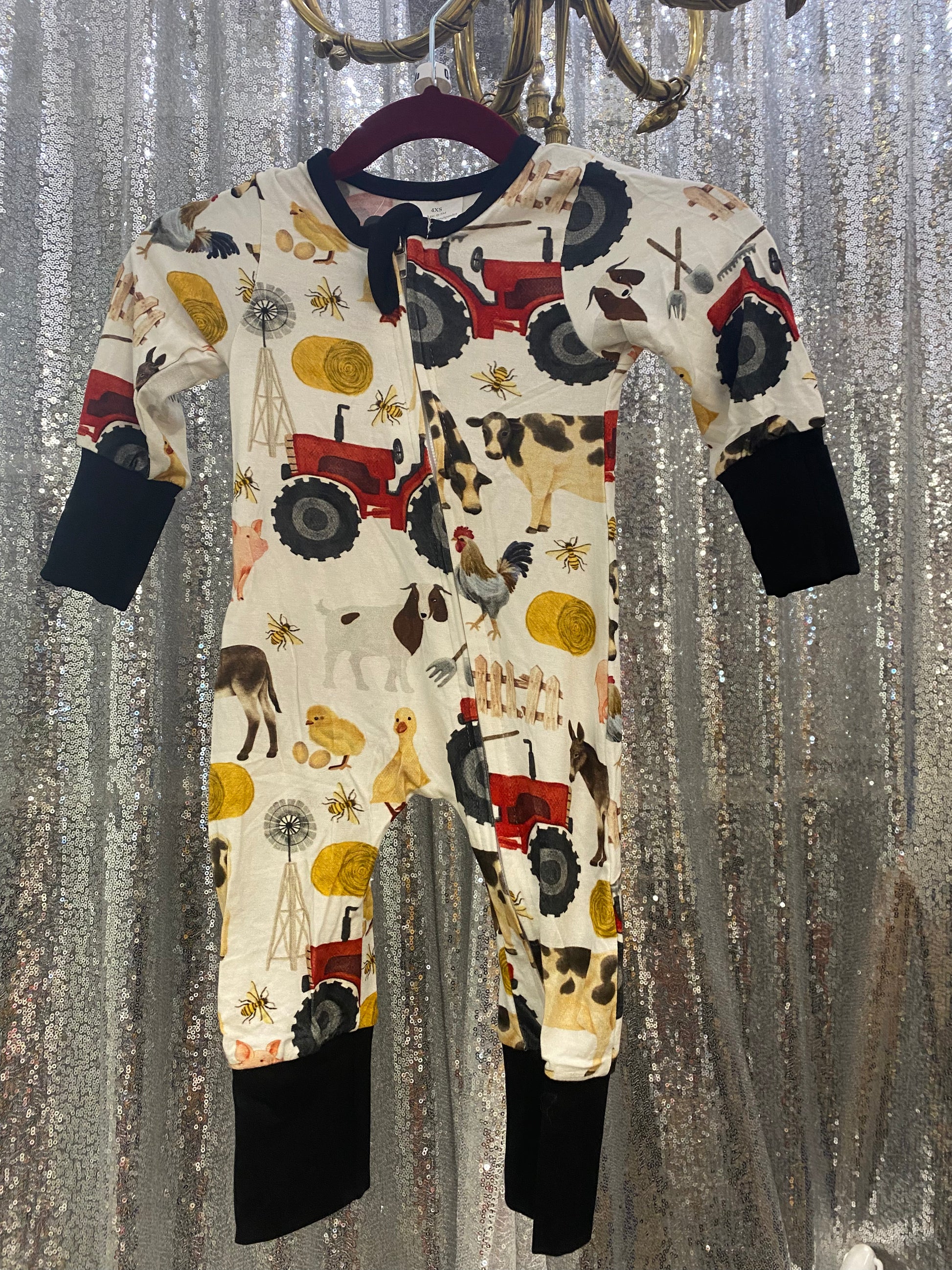 Long Sleeve Farm Animal Themed Zip Up Onesie