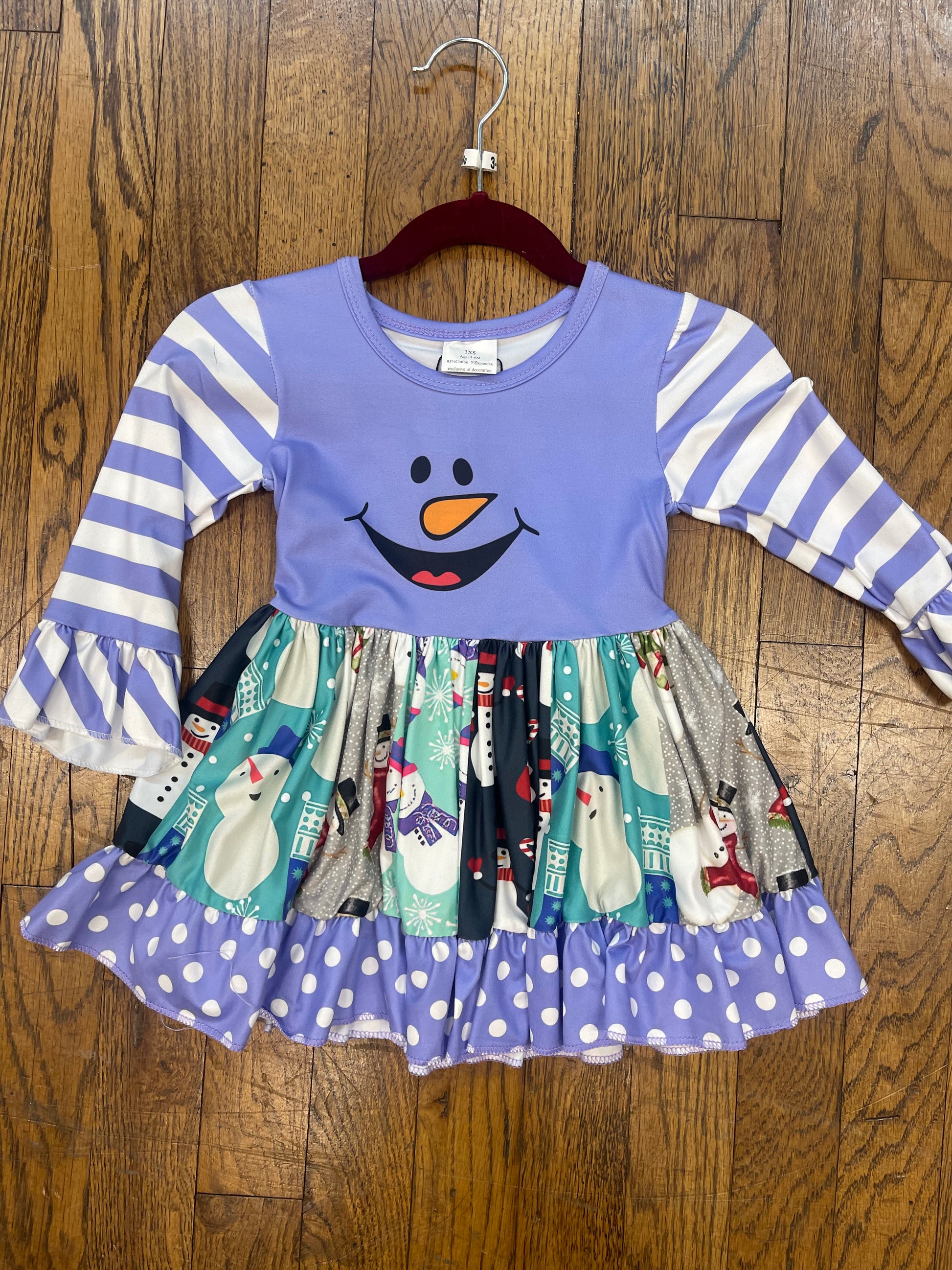 Purple Snowman Christmas Twirl Dress