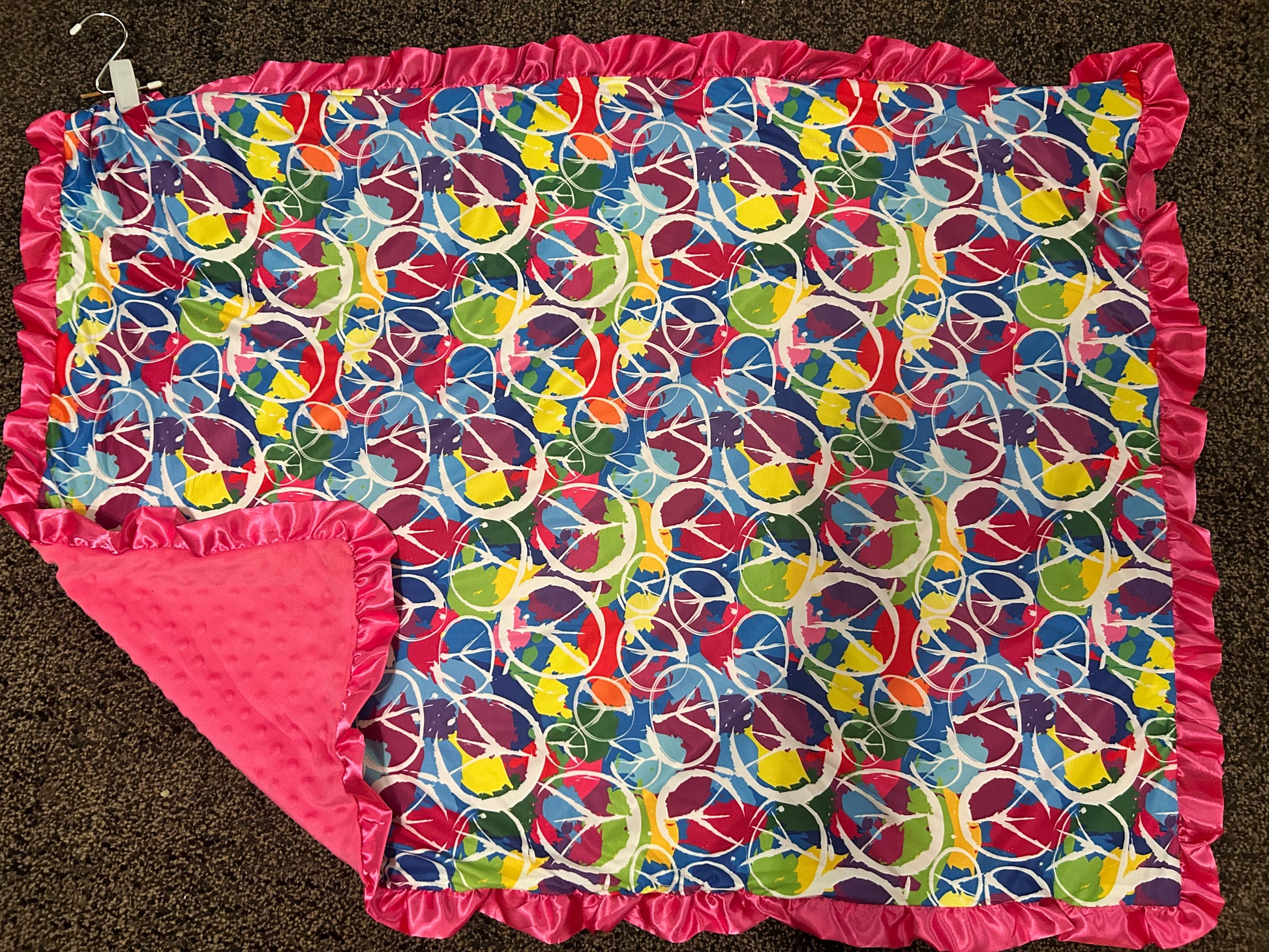 Ruffle Edged Peace Sign Splatter Paint Minky Blanket