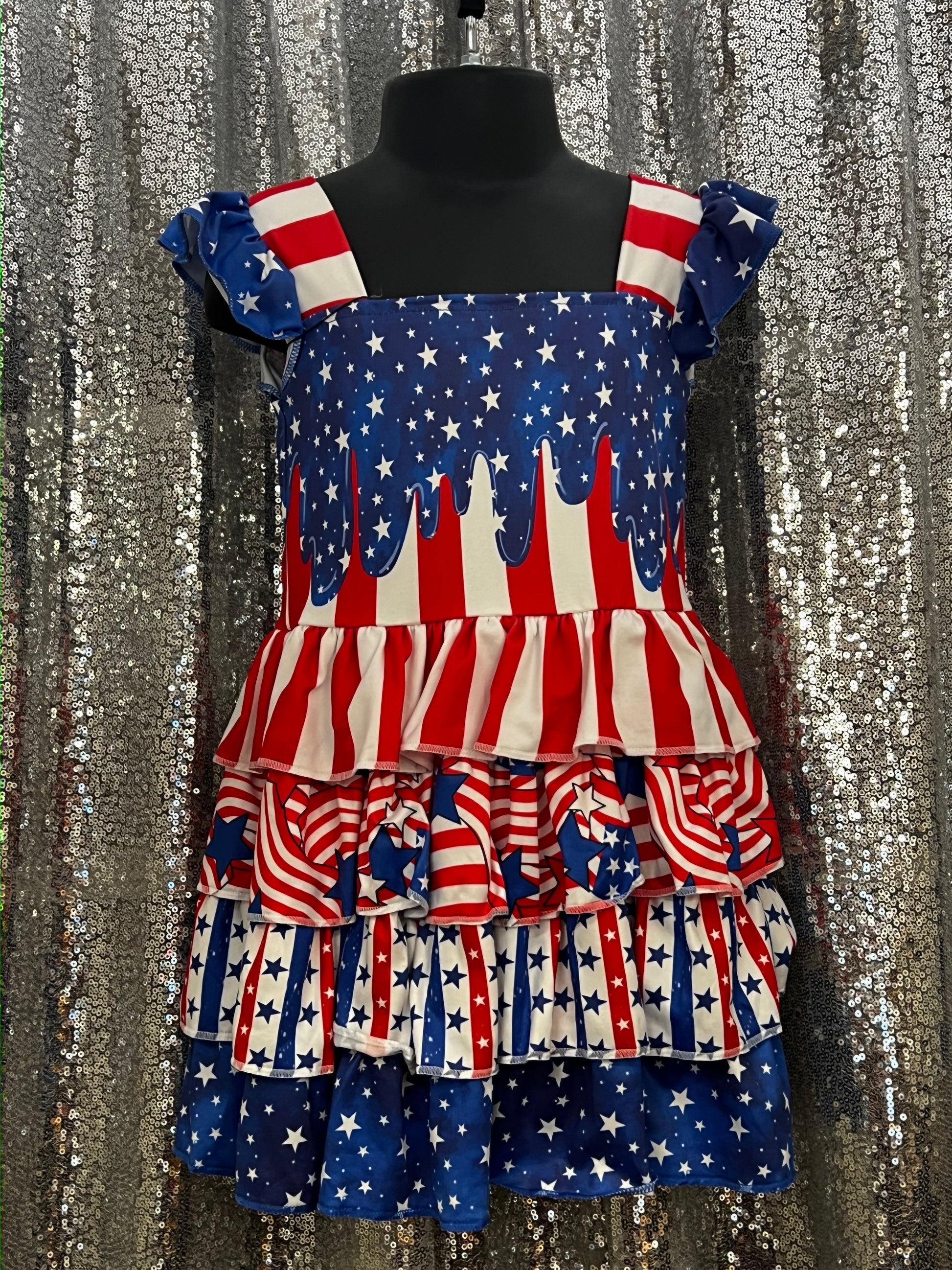 Stars and Stripes Ruffle Drip Dress