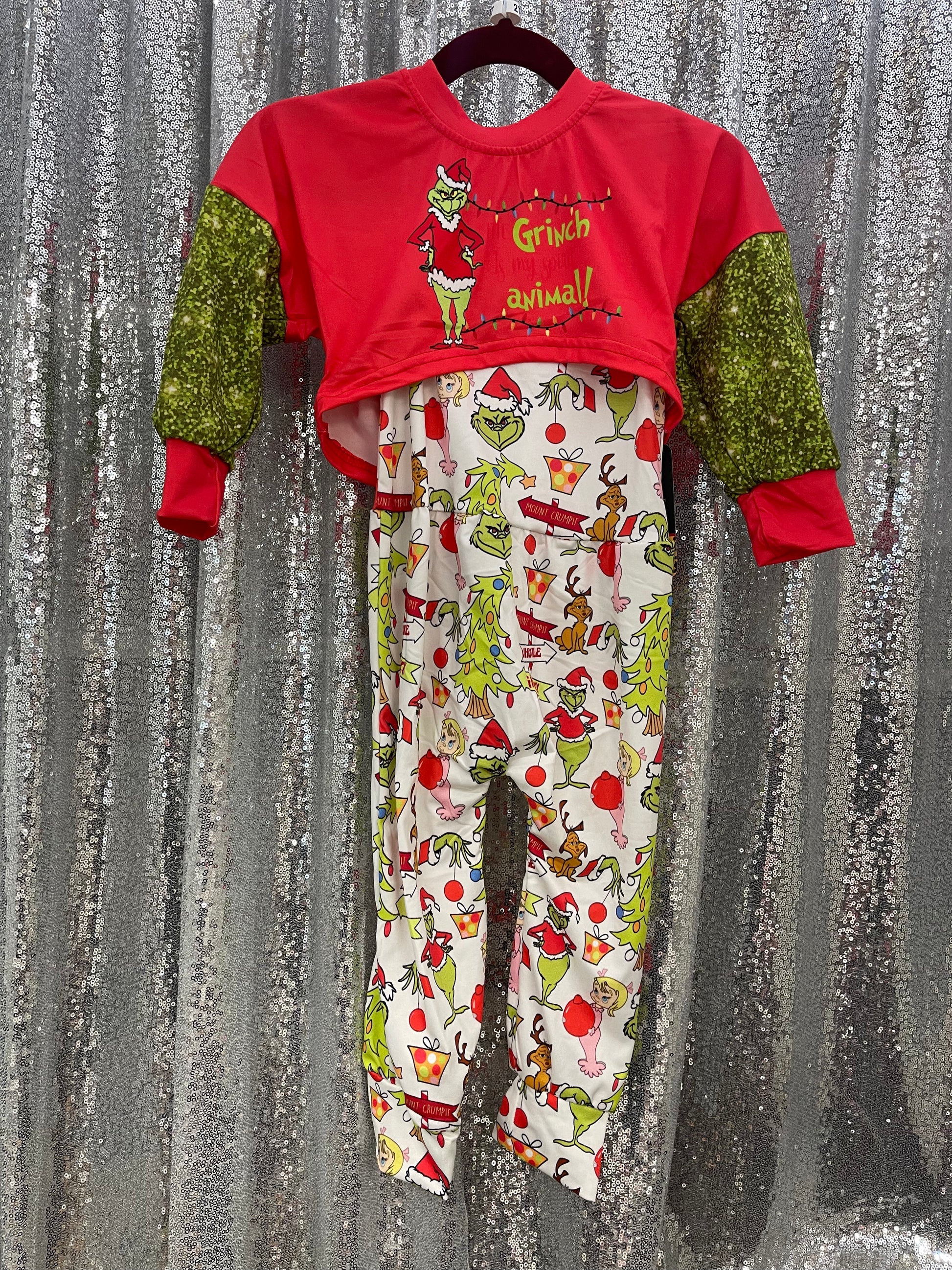 The Grinch is my Spirit Animal Tank Top Romper w/ Cropped Sweater Christmas
